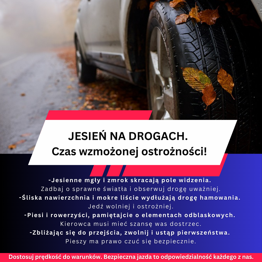 Jesień to pora roku, która niesie ze sobą nie tylko malownicze krajobrazy, ale również szereg wyzwań dla uczestników ruchu drogowego. Zmienna pogoda, szybko zapadający zmrok, opady deszczu, mgły oraz poranne przymrozki sprawiają, że warunki na drogach stają się nieprzewidywalne i wymagają szczególnej uwagi zarówno od kierowców, jak i pieszych.