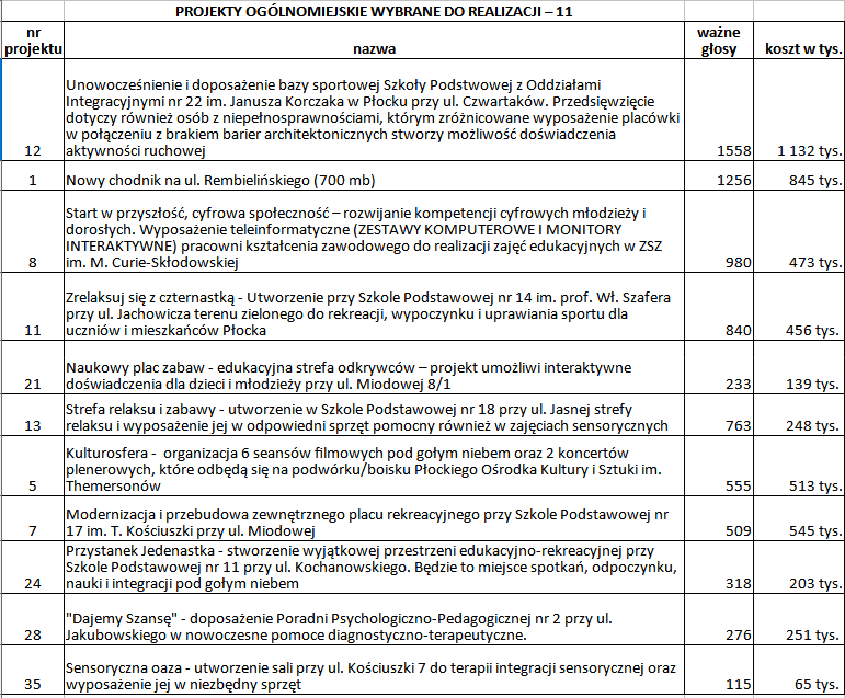 To teraz pytanie – jakie projekty wygrały? Co pojawi się w Płocku? Poniżej przedstawiamy listę zwycięskich projektów.