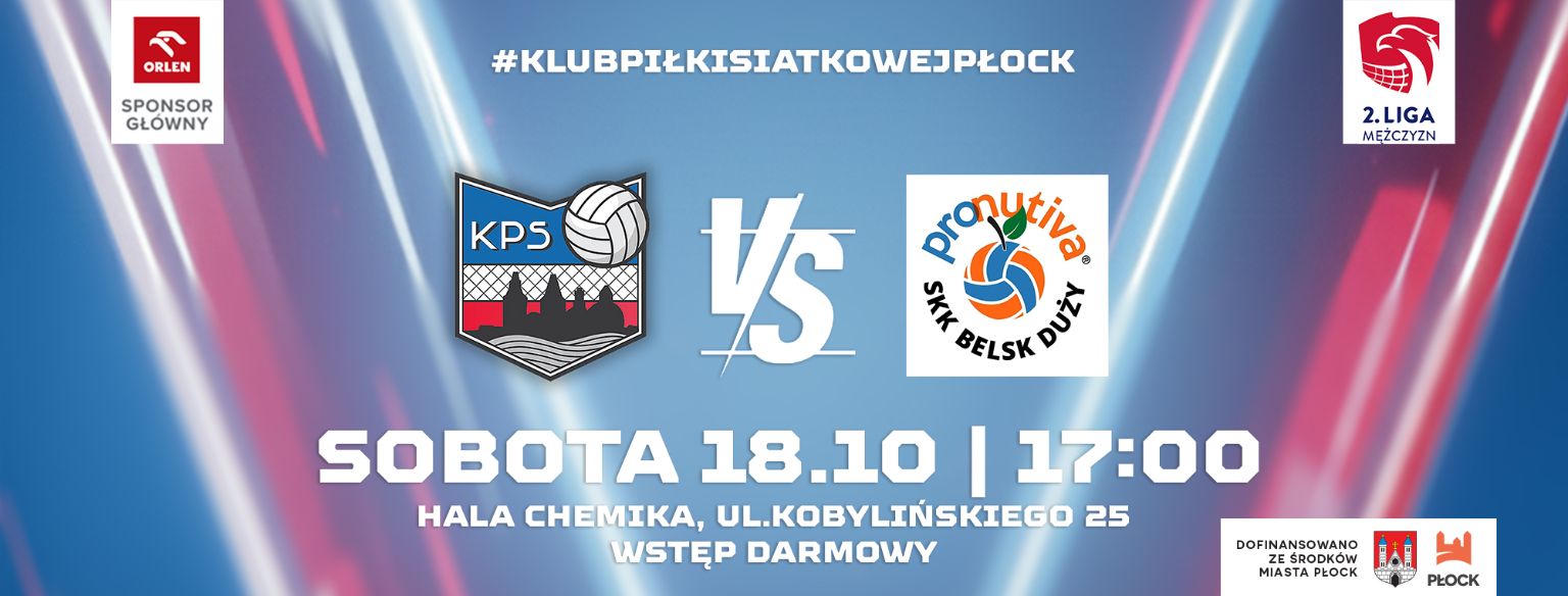 Klub Piłki Siatkowej Płock serdecznie zaprasza przedstawicieli mediów na emocjonujące spotkanie 4. kolejki rozgrywek 2. Ligi mężczyzn, w którym płoccy siatkarze zmierzą się z aktualnym liderem tabeli, drużyną ProNutiva SKK Belsk Duży. Mecz odbędzie się w sobotę, 18 października o godzinie 17:00 w hali Chemika przy ul. Kobylińskiego 25 w Płocku. Wstęp na wydarzenie jest wolny.