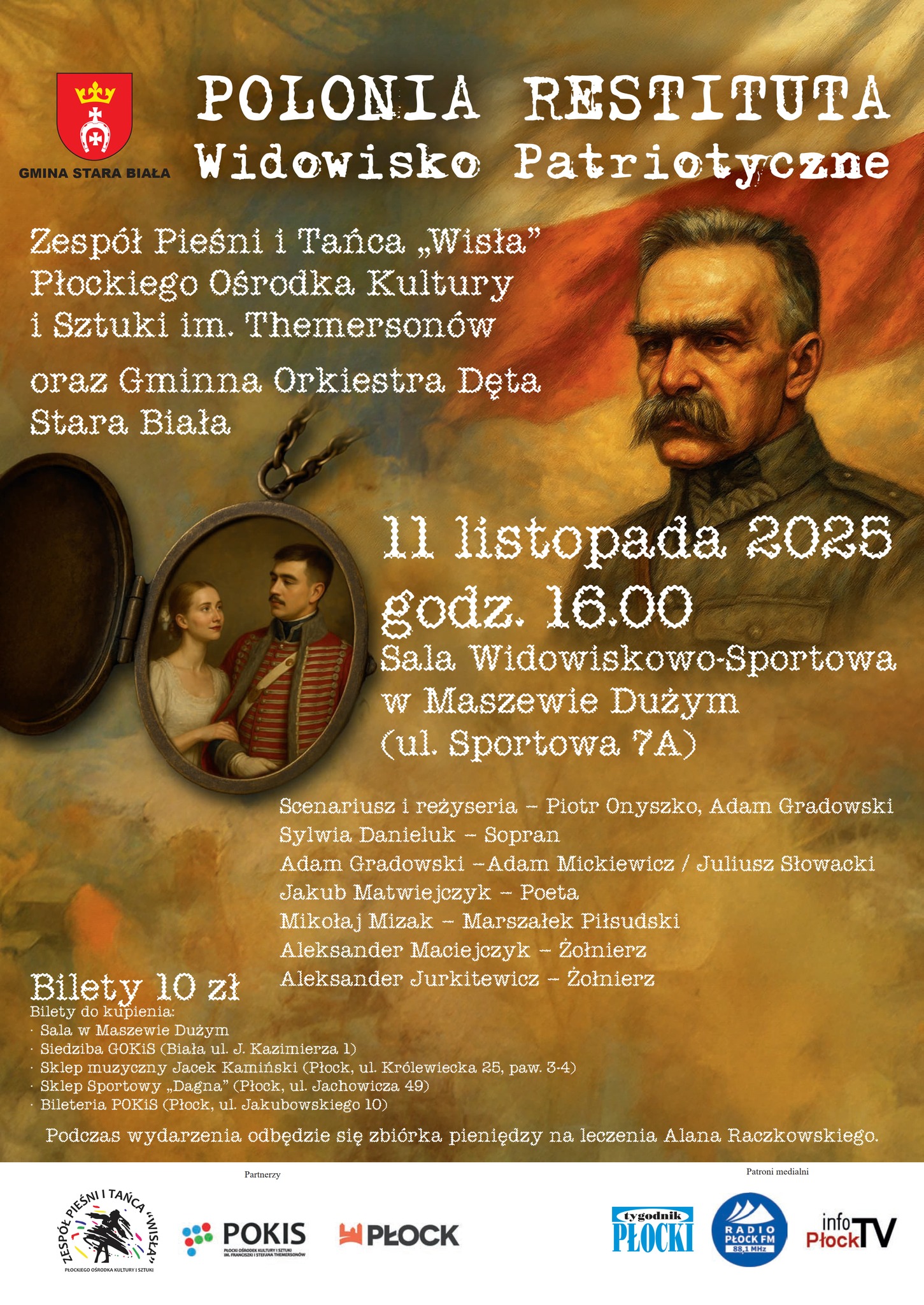 W widowisku udział wezmą: Zespół Pieśni i Tańca „Wisła” Płockiego Ośrodka Kultury i Sztuki im. Themersonów; Gminna Orkiestra Dęta Stara Biała; Sylwia Danieluk – Sopran oraz aktorzy Adam Gradowski (rola Adama Mickiewicza/ Juliusza Słowackiego), Jakub Matwiejczyk (Poeta), Mikołaj Mizak (w roli Marszałeka Piłsudskiego), Aleksander Maciejczyk (Żołnierz) i Aleksander Jurkitewicz (Żołnierz).
