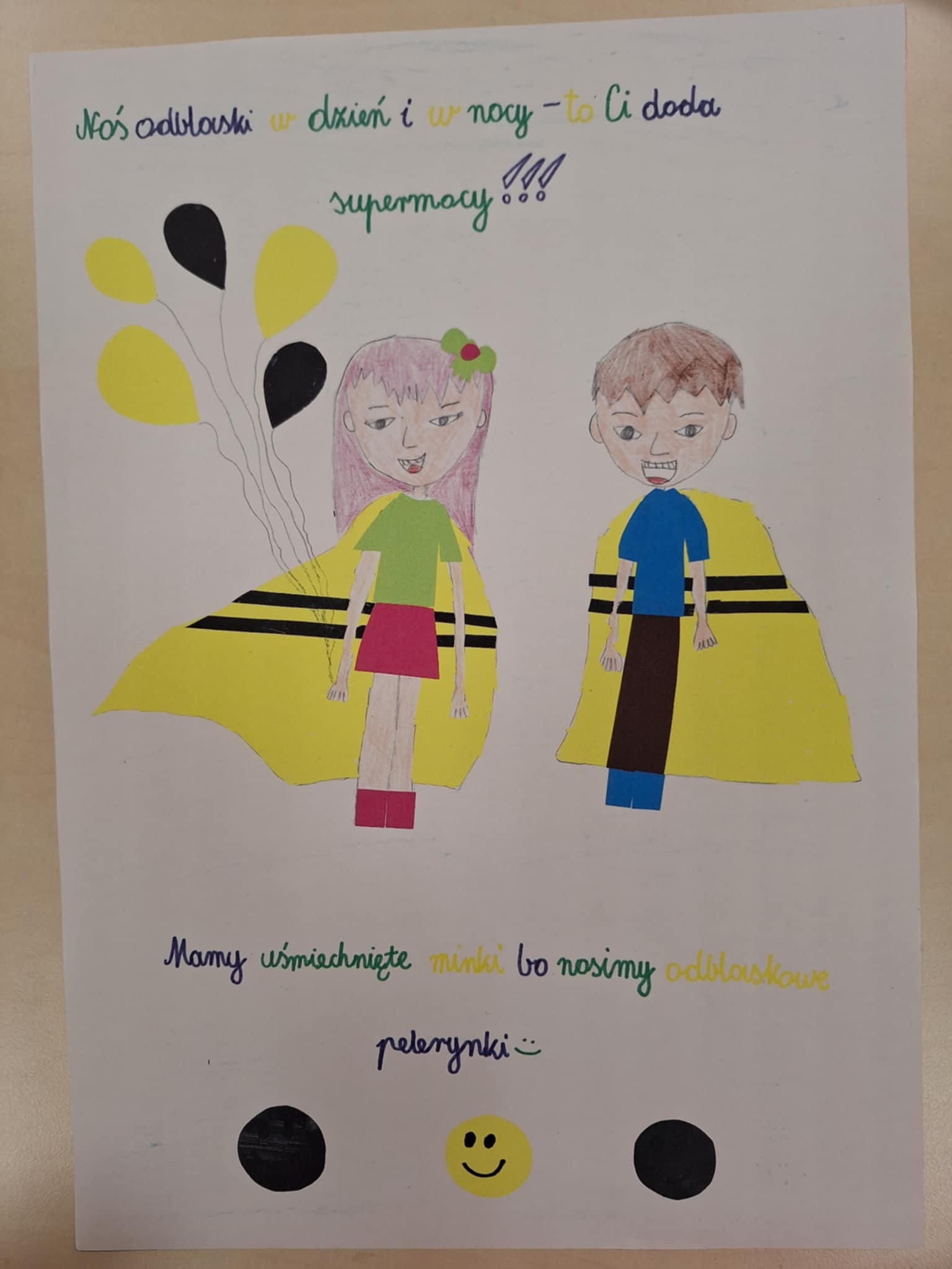 Warto podkreślić, że Szkoła Podstawowa nr 5 w Płocku bierze udział w Ogólnopolskim Konkursie „Odblaskowa szkoła”, którego celem jest promowanie idei noszenia odblasków oraz kształtowanie nawyków bezpiecznego poruszania się po drogach. Działania uczniów doskonale wpisują się w ideę tego przedsięwzięcia, pokazując, że o bezpieczeństwie można mówić w sposób twórczy, angażujący i skuteczny.