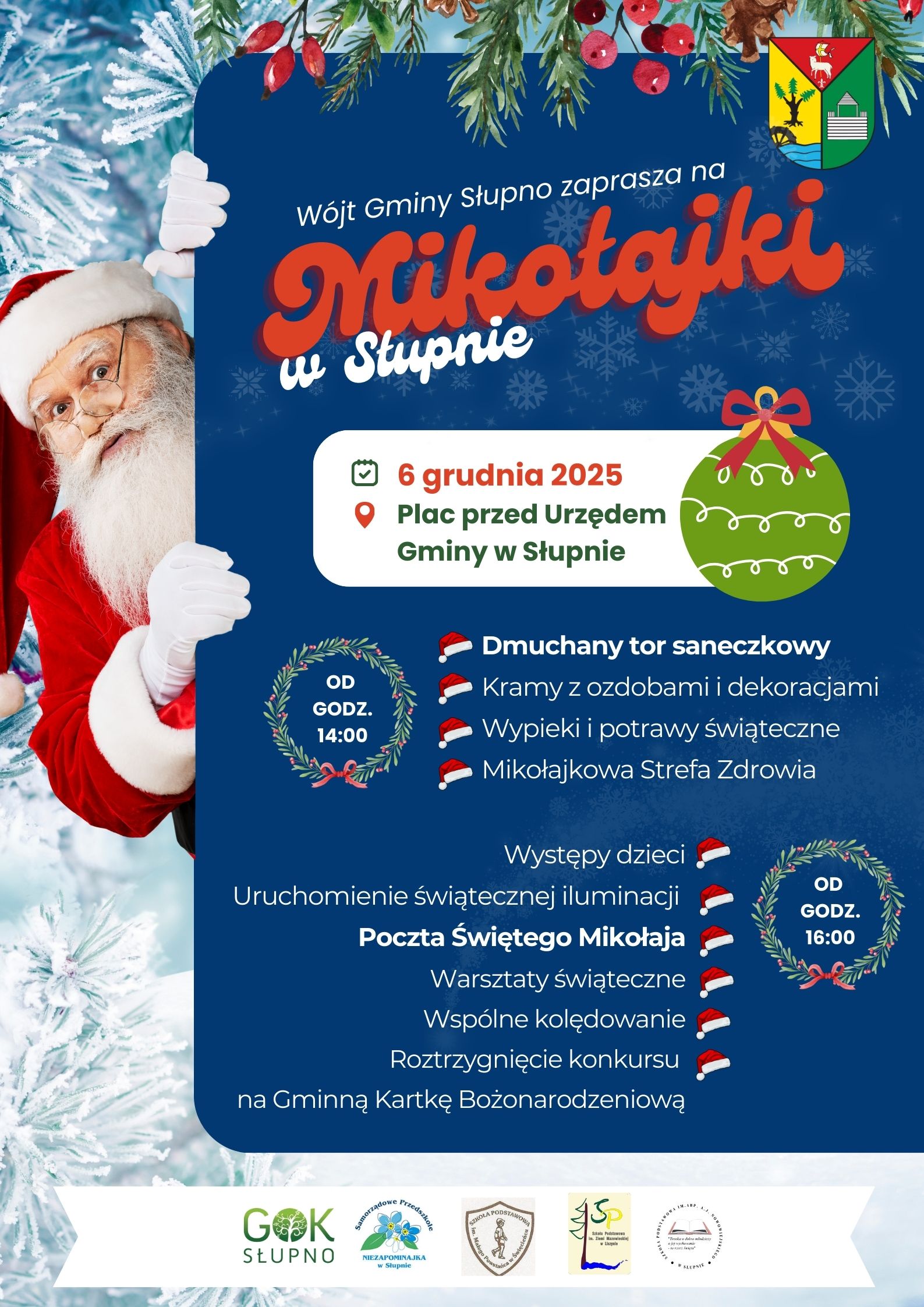 Już w sobotę, 6 grudnia, na placu przed Urzędem Gminy w Słupnie mieszkańcy oraz goście rozpoczną wspólne świętowanie nadchodzącego Bożego Narodzenia. Wójt gminy Słupno Marcin Zawadka zaprasza wszystkie dzieci, rodziców, seniorów i sympatyków gminy, na wyjątkowe popołudnie pełne rodzinnego ciepła, świątecznej atmosfery i lokalnych tradycji. Wydarzenie rozpocznie się o godzinie 14.00.
