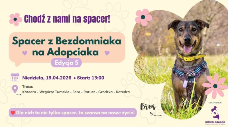 W niedzielę, 19 kwietnia, o godzinie 13:00 w parku przy Katedrze w Płocku odbędzie się spacer adopcyjny z podopiecznymi schroniska.